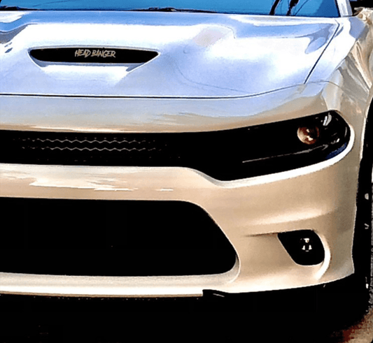 Head Banger Car Badge - White on Matte Black - Aggressive Font