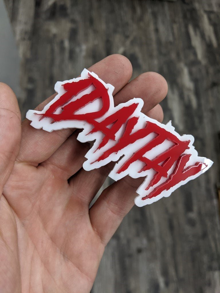 Insignia de automóvil 1DAYTAY - Rojo sobre blanco - Fuente agresiva