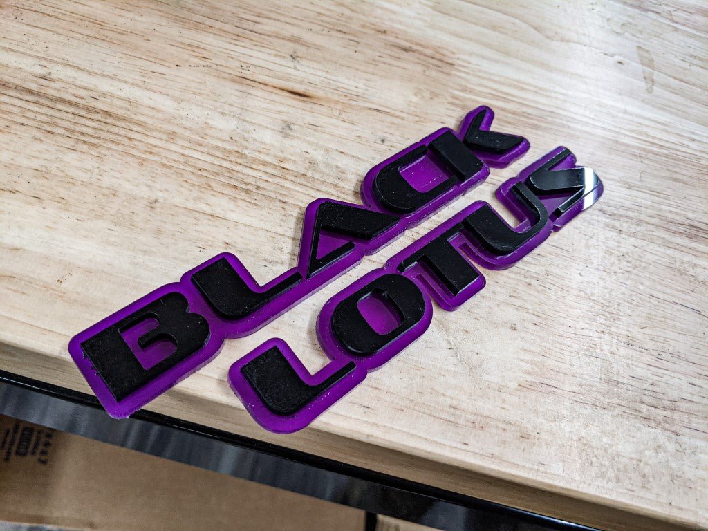 Insignia de coche Black Lotus - Negro brillante sobre morado - Fuente OEM