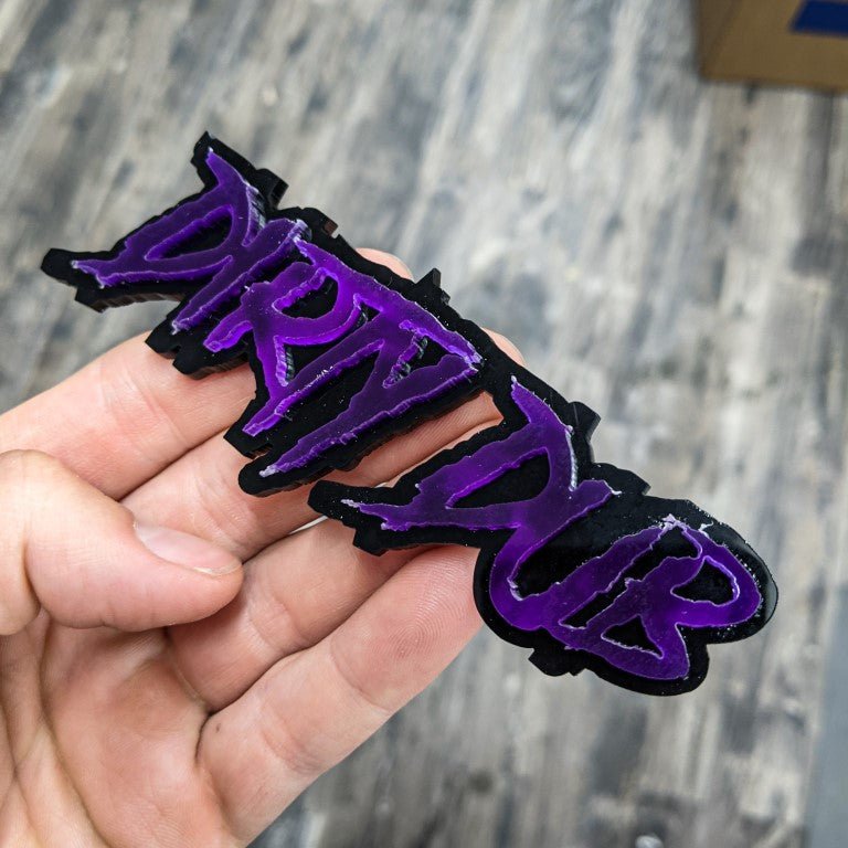 Insignia de coche Dirty Dub: montaje en cinta morada sobre negra