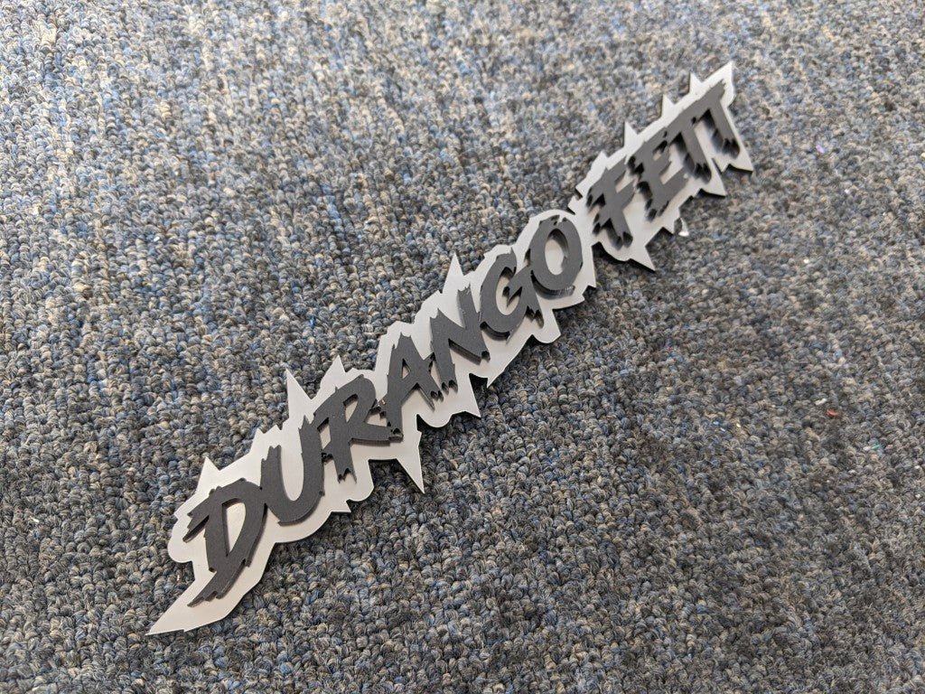 Badge de voiture Durango Fett - Noir mat sur argent brossé - Police Lightning