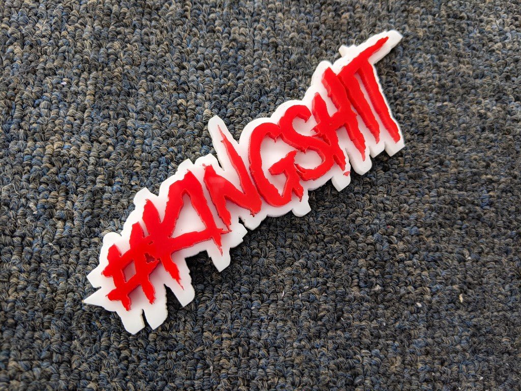 Badge de voiture #Kingshit - Rouge sur blanc - Police agressive