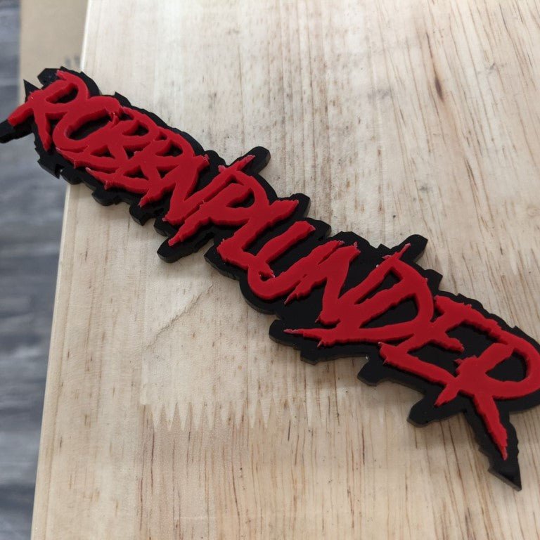 Badge de voiture Robbnplunder - Rouge sur noir - Montage par ruban adhésif