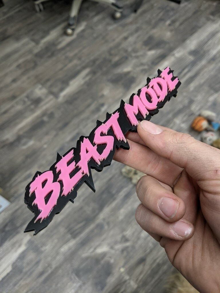 Beast Mode Car Badge - Pink On Gloss Black - Lightning Font