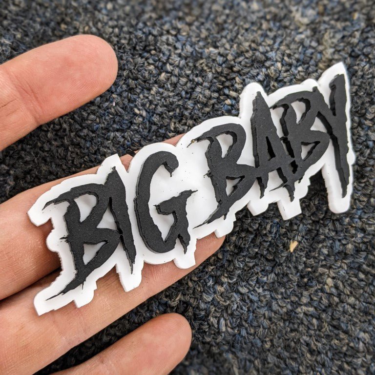 Big Baby Car Badge - Matte Black On White - Aggressive Font