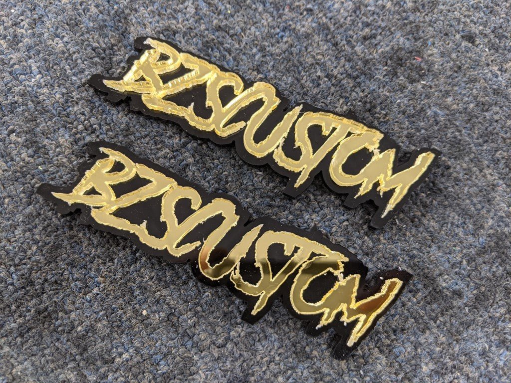 BZSCustom Car Badge - Mirror Gold On Gloss Black - Aggressive Font