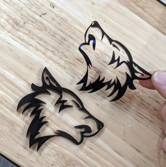 Custom coyote car fender badges. These single-color badges mount to any flat surface on your vehicle and come with VHB tape on the back for easy mounting.