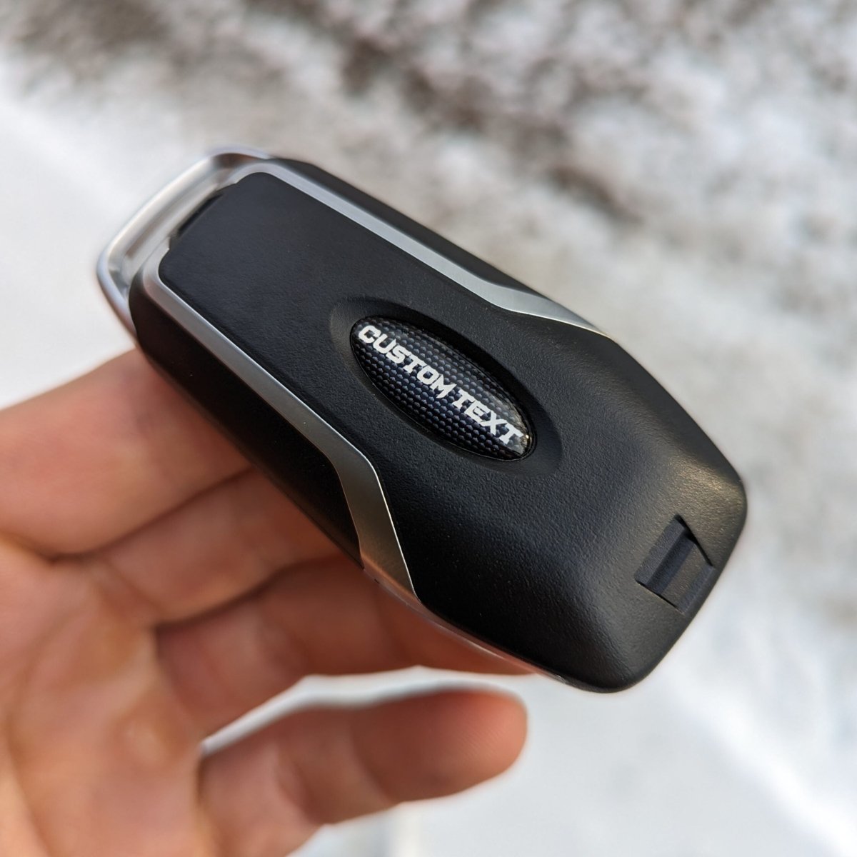 Custom text key fob inlay decals are here! This inlay fits right into the indent on your OEM key fob (key fob not included). Choose your own text (no brand names or trademarks please!)