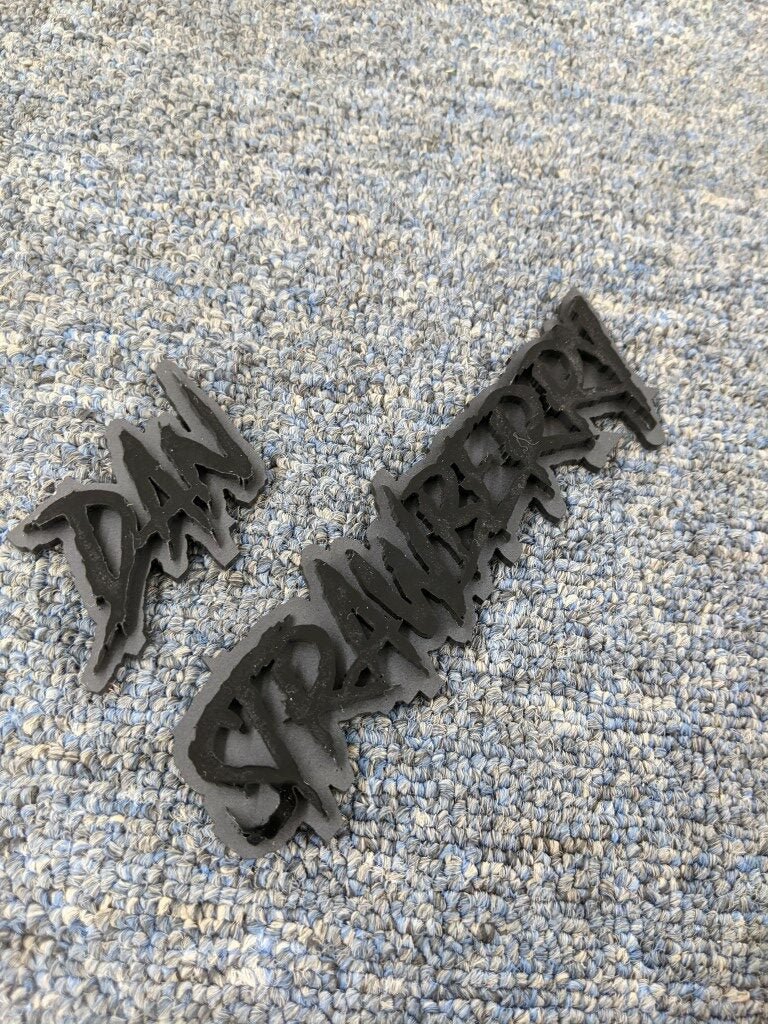 Dan Strawberry Car Badge - Gloss Black On Matte Black - Aggressive Font