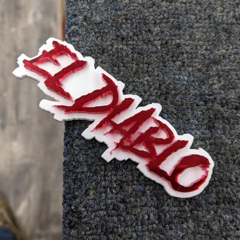 El Diablo Car Badge - Mirror Red On White - Aggressive Font