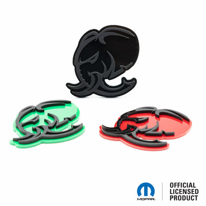 Give your ride a powerful upgrade with this officially licensed Hellephant® Fender Badge Pair. Designed with a premium two-layer construction, these badges offer customizable color options to match your build’s unique style. Engineered for a secure fit, they mount easily with VHB tape for body placement or studs for grille installation. Perfect for Mopar enthusiasts looking to showcase their Hellephant-powered beast, these emblems add an aggressive, high-performance touch to any vehicle. Our colors are not matches for any OEM color.