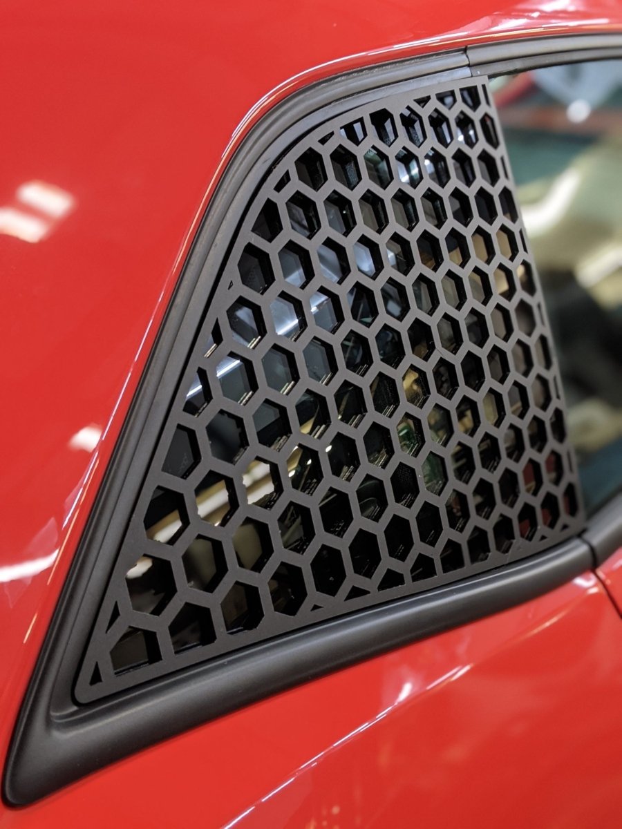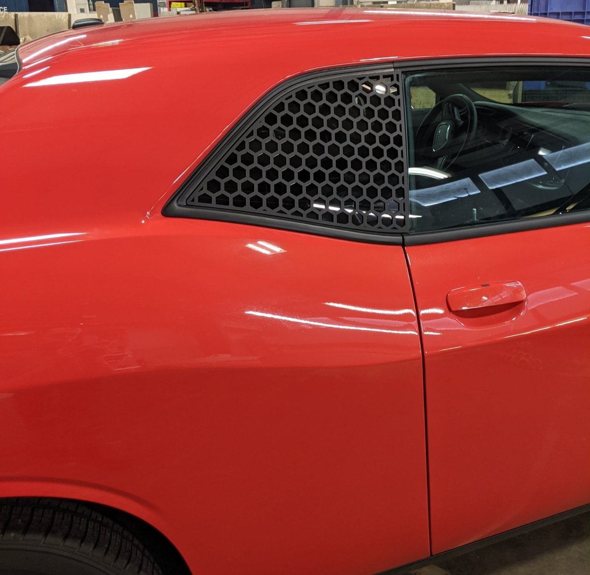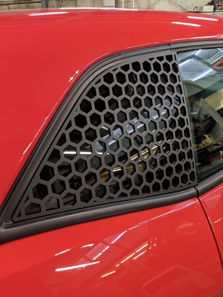 Precision cut hexagonal window louvers for the 2015-2021 Challenger® rear windows (comes as a pair, one passenger and one driver). These raised louvers mount easily and securely with 3M VHB tape. These louvers are customizable, but we highly recommend matte black for the sleek look and resistance to scratches.