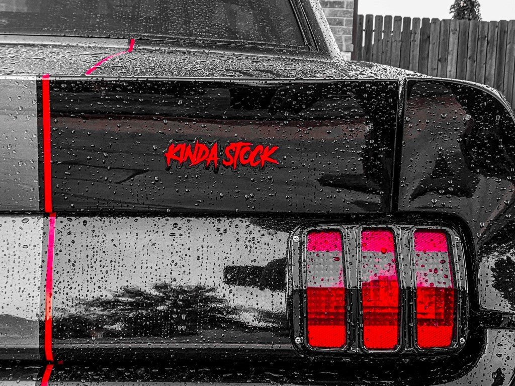 Kinda Stock Car Badge - Red On Gloss Black - Aggressive Font