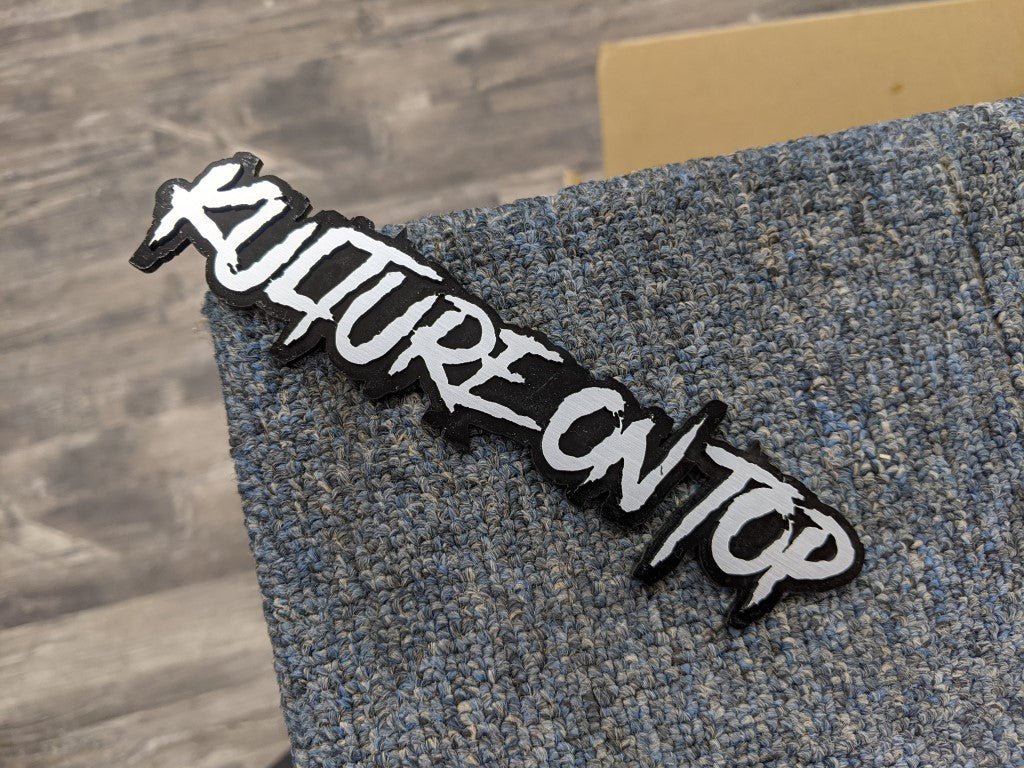 Kulture On Top Car Badge - White On Gloss Black - Aggressive Font