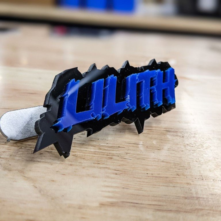 Lilith Car Badge - Blue on Gloss Black - Lightning Font