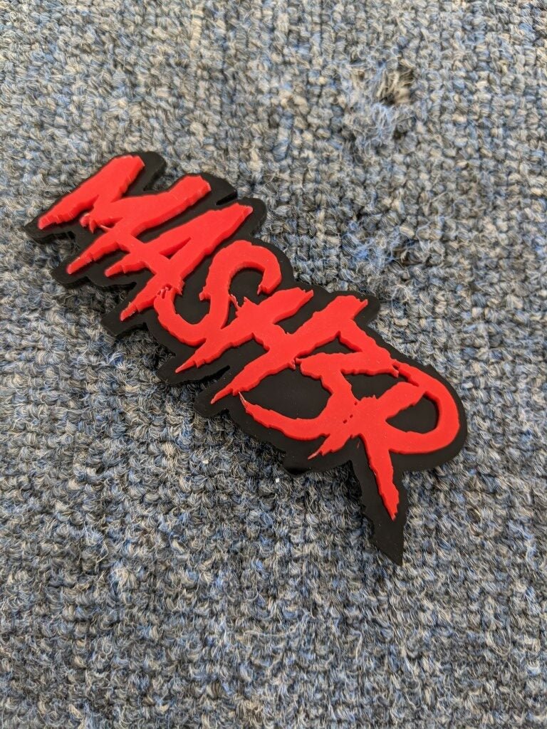 Mash3R Car Badge - Red On Gloss Black - Aggressive Font