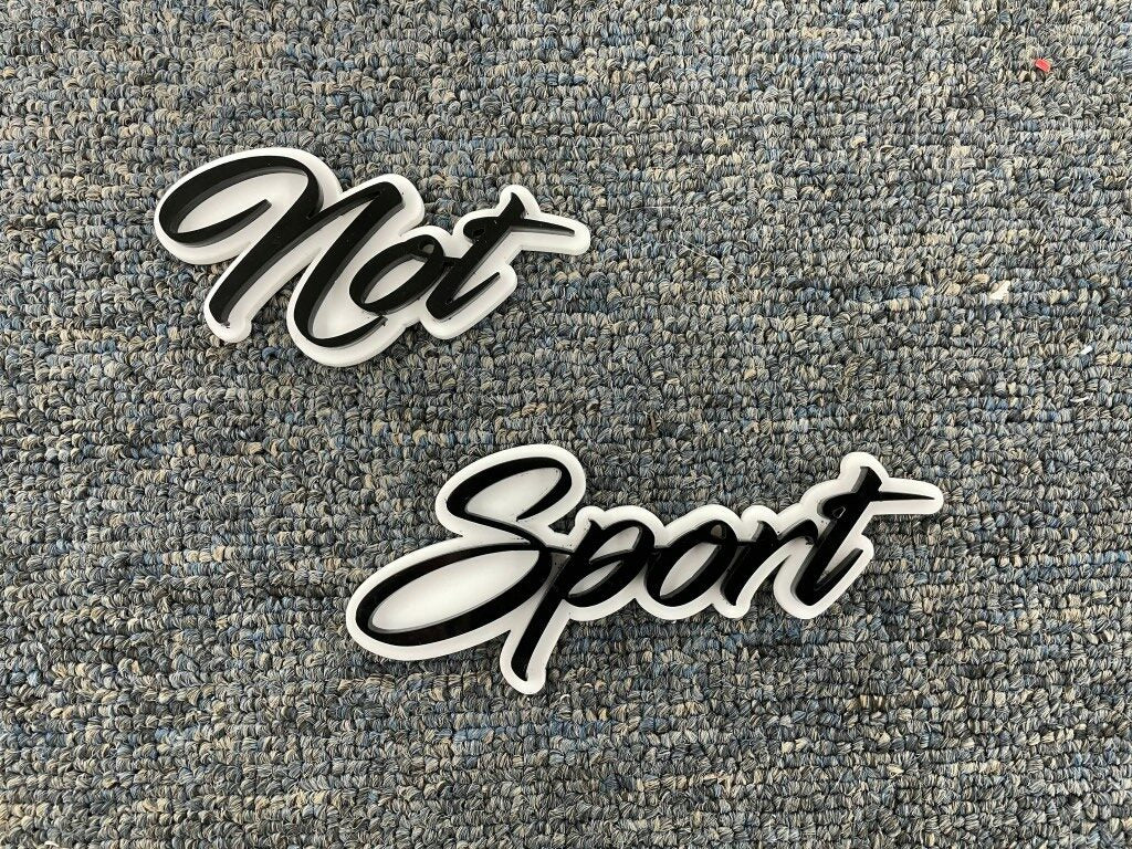 Not Sport Car Badge - Gloss Black On White - Script Font