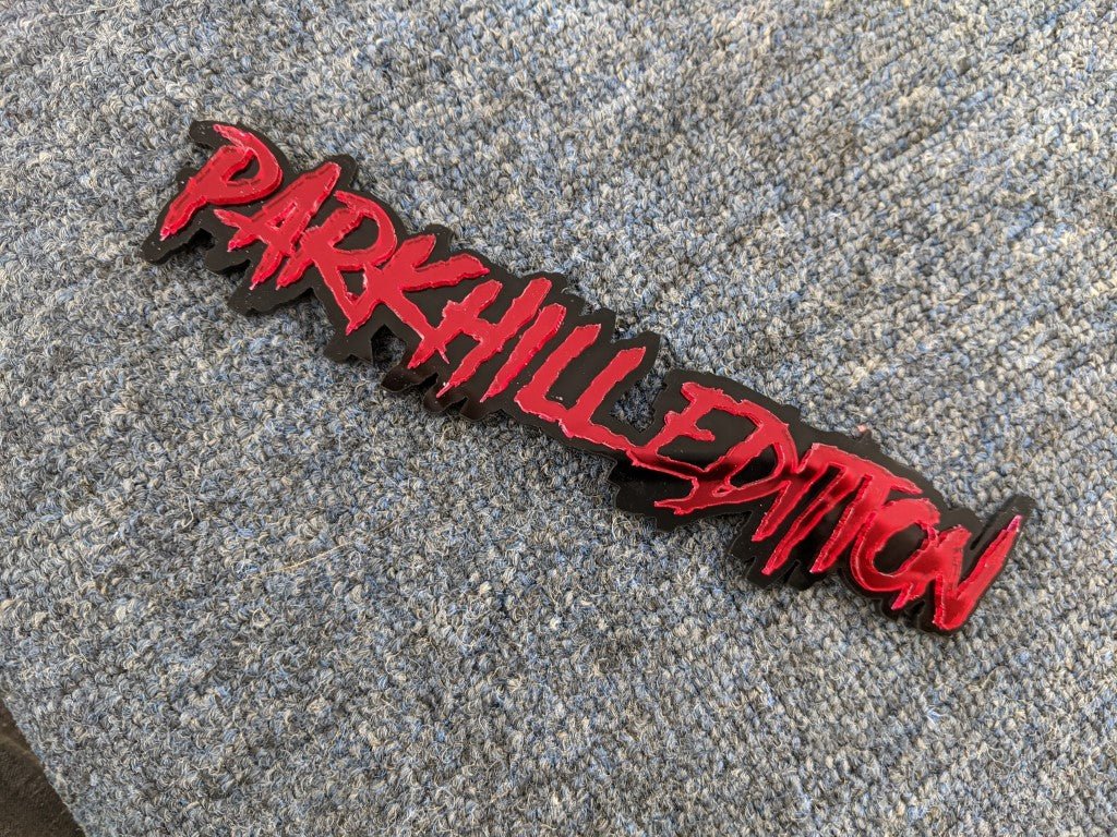 Parkhill Edition Car Badge - Mirror Red On Gloss Black - Aggressive Font