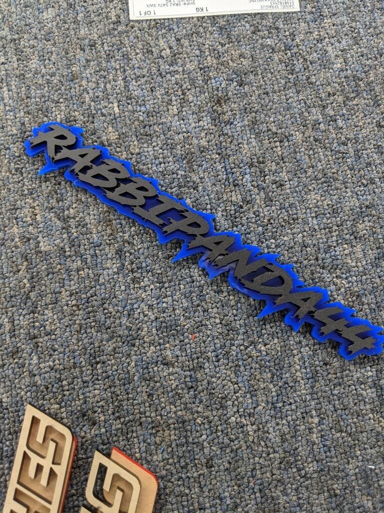 Rabbipanda44 Car Badge - Matte Black On Blue - Lightning Font