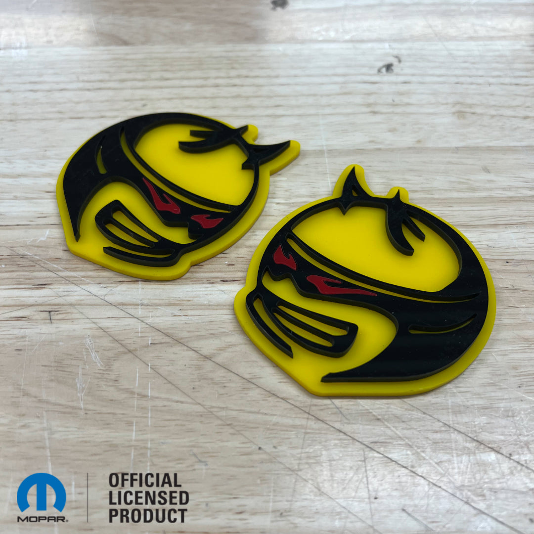 This Scat Pack® Bee Head Badge features custom colors.