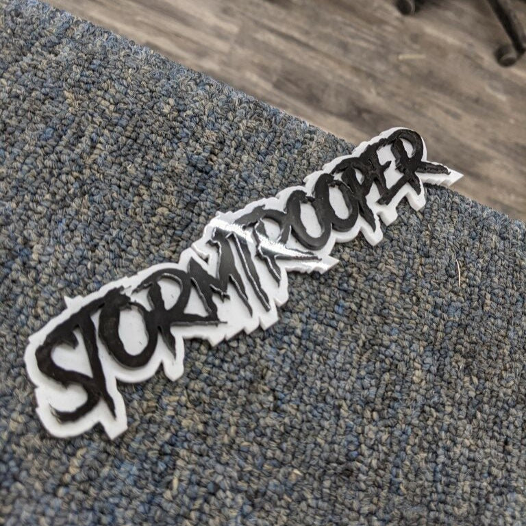 Stormtrooper Car Badge - Gloss Black On White - Aggressive Font