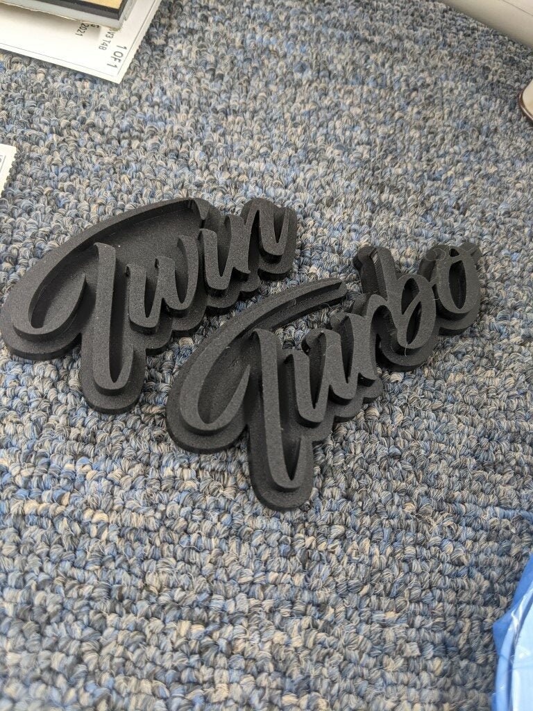 Twin Turbo Car Badge - Matte Black On Matte Black - Script Font