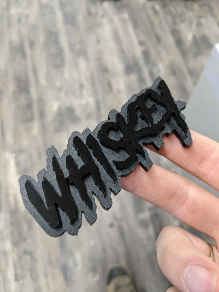 Whiskey Car Badge - Gloss Black On Matte Black - Aggressive Font